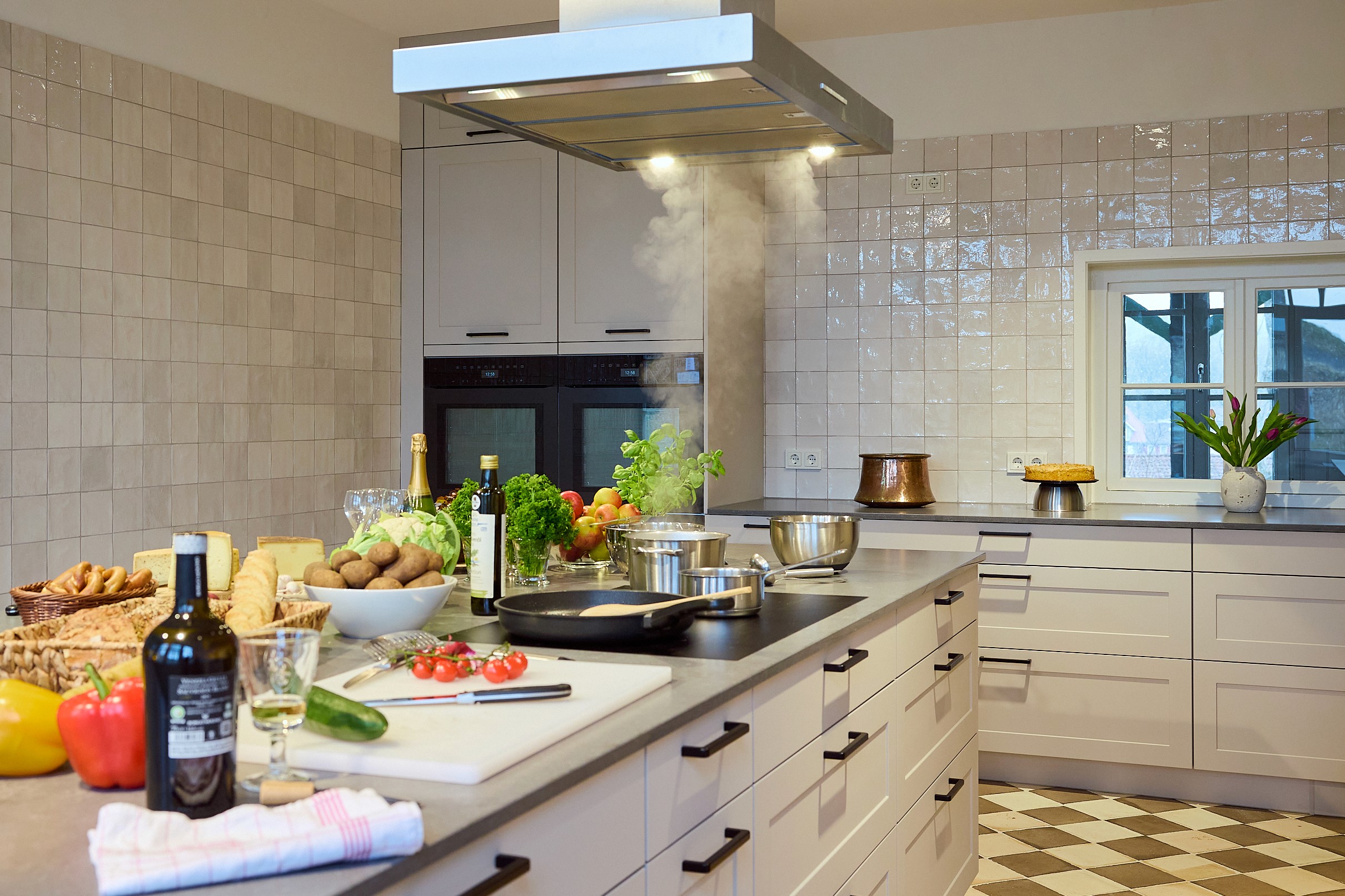 Zusammen kochen, lange sitzen, später noch ein Glas Wein.